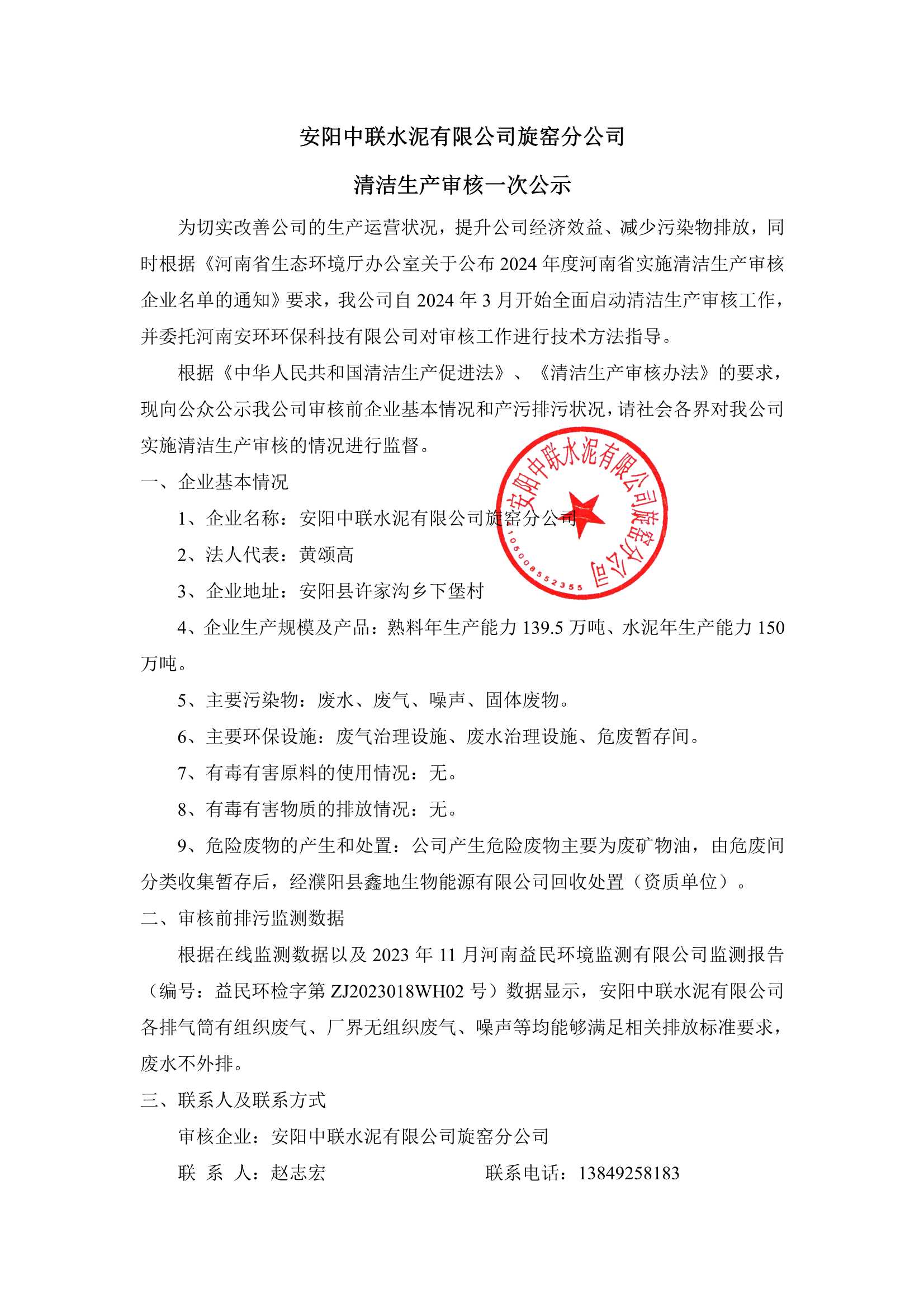 安阳金年会水泥有限公司旋窑分公司突发环境事件应急预案公示
